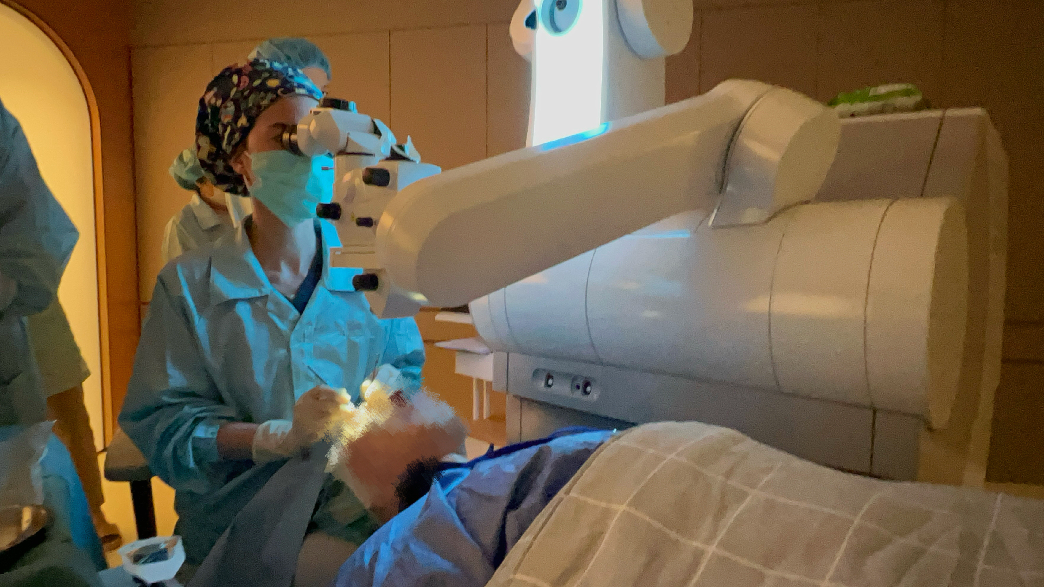 張芯瑜醫師請客戶感冒緩解、完全停用藥物至少兩週後,再來進行檢測,果然瞳孔尺寸恢復正常範圍之內,符合手術條件。B 護理師放下心中大石,滿心歡喜,完成期待已久的 SMILE Pro 全飛秒近視雷射手術,手術後第一週雙眼裸視 1.0,非常開心!